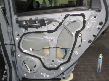 新型フィットにカスタムオーディオ!埼玉県川口市 2024/03/07 まずは、ETC,ナビ、ドライブレコーダー(フロント、リア)、フィオグLEDを施工! ミラー一体型のドライブレコダー ナビ配線! イエローホワイト切替LED 純正カバーを外して作業!」 デットニングの為ブチルをはがします。 ホンダ車は厄介です。