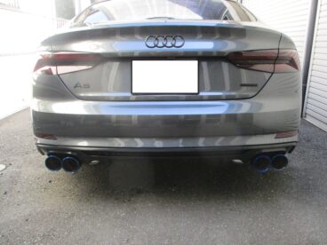 アウディA5スポーツバック 完成!埼玉県川口市! 2025/09/26 リップスポイラーも施工! マットブラックペイント マフラーを施工! A5デュフーザーをチョイス!マットブラックペイント 北海道のおみあげを頂きました。 大変美味しくいただきました。ありがとうございます。